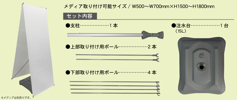 スタンド本体とバナーは別売りとなります。セット販売ではございません。ご希望に合わせてターポリンorメッシュターポリンバナーを一緒にご発注ください。