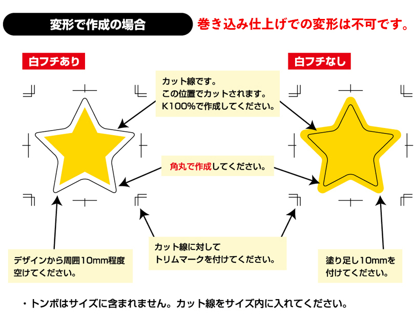 ・必ずCMYKモードでご制作ください。RGBモードでご入稿の場合は強制的にCMYKモードに変更ののち出力となります。