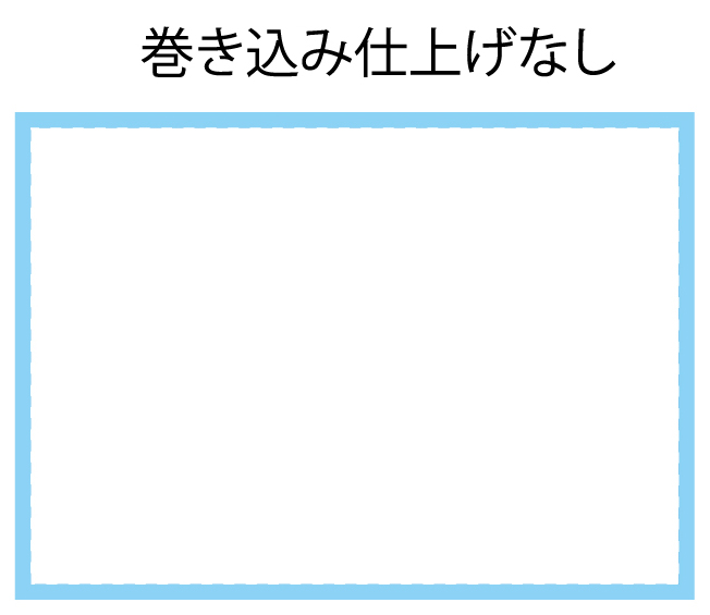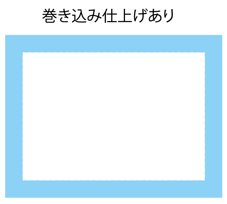 | 巻き込み仕上げなしの場合は塗りたしは周囲5mmずつ | 巻き込み仕上げありの場合は塗りたしは周囲30mmずつ |