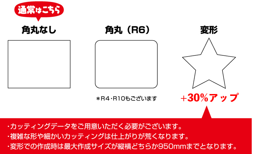 角の形状は下記の2種類からお選びいただけます。