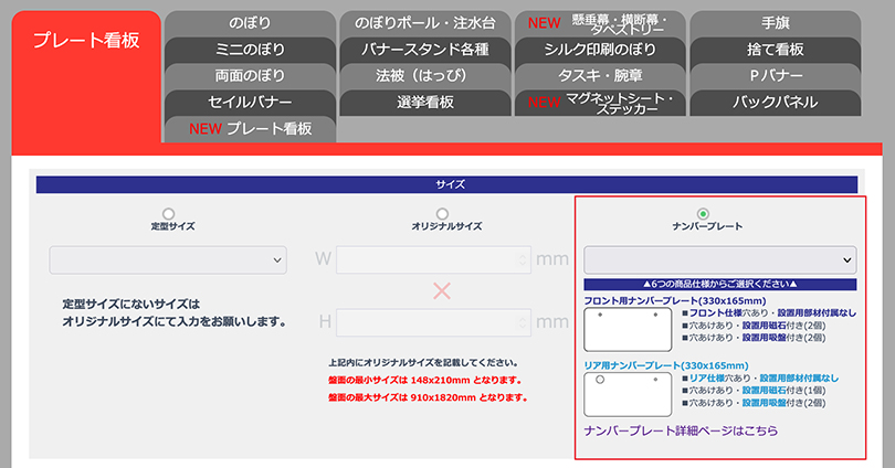 ナンバープレートは「プレート看板」からご発注が可能です。